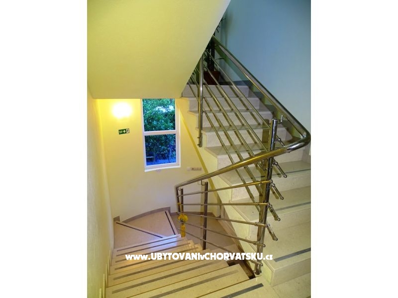 "A 1" - Die Wohnung verfügt über zwei Schlafzimmer mit Doppelbetten im zweiten Stock. Sie ist modern ausgestattet und ideal für Familien mit Kindern. Die Nutzung des Swimmingpools und des Grills ist kostenlos, ebenso wie die Parkplätze vor dem Haus.